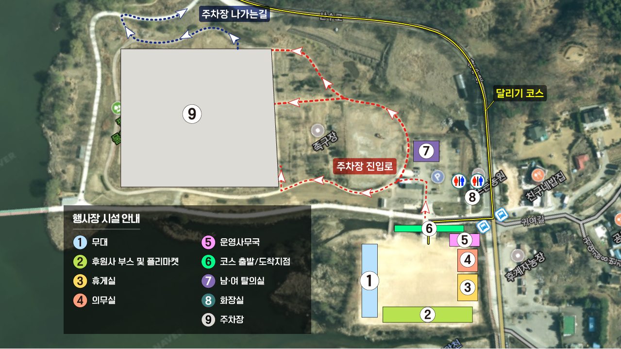 참가자 전원이 대회장 인근 주차할 수 있는 공간이 있어 물품보관소는 따로 운영되지 않습니다. 아침에는 기온이 낮아 쌀쌀할 수 있으니 개별 방한대책을 준비해주세요.